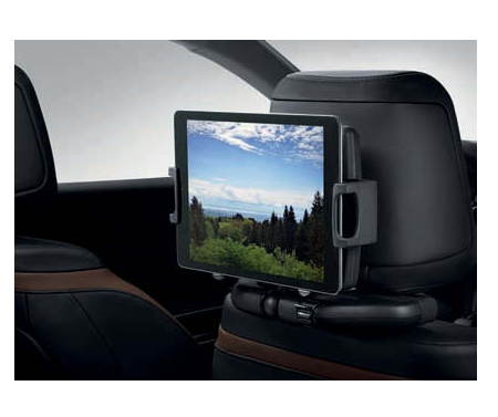 タブレットや液晶モニターなどを固定できる汎用ステー。後部座席専用、ヘッドレスト固定式