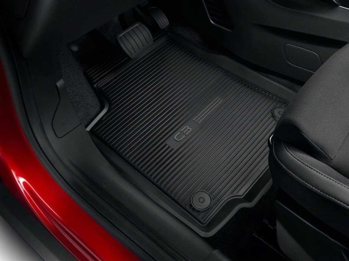 シトロエンC3 第4世代(CC21 / 2024年〜)MHEVハイブリッドモデル用の純正ラバーフロアマットセットです。